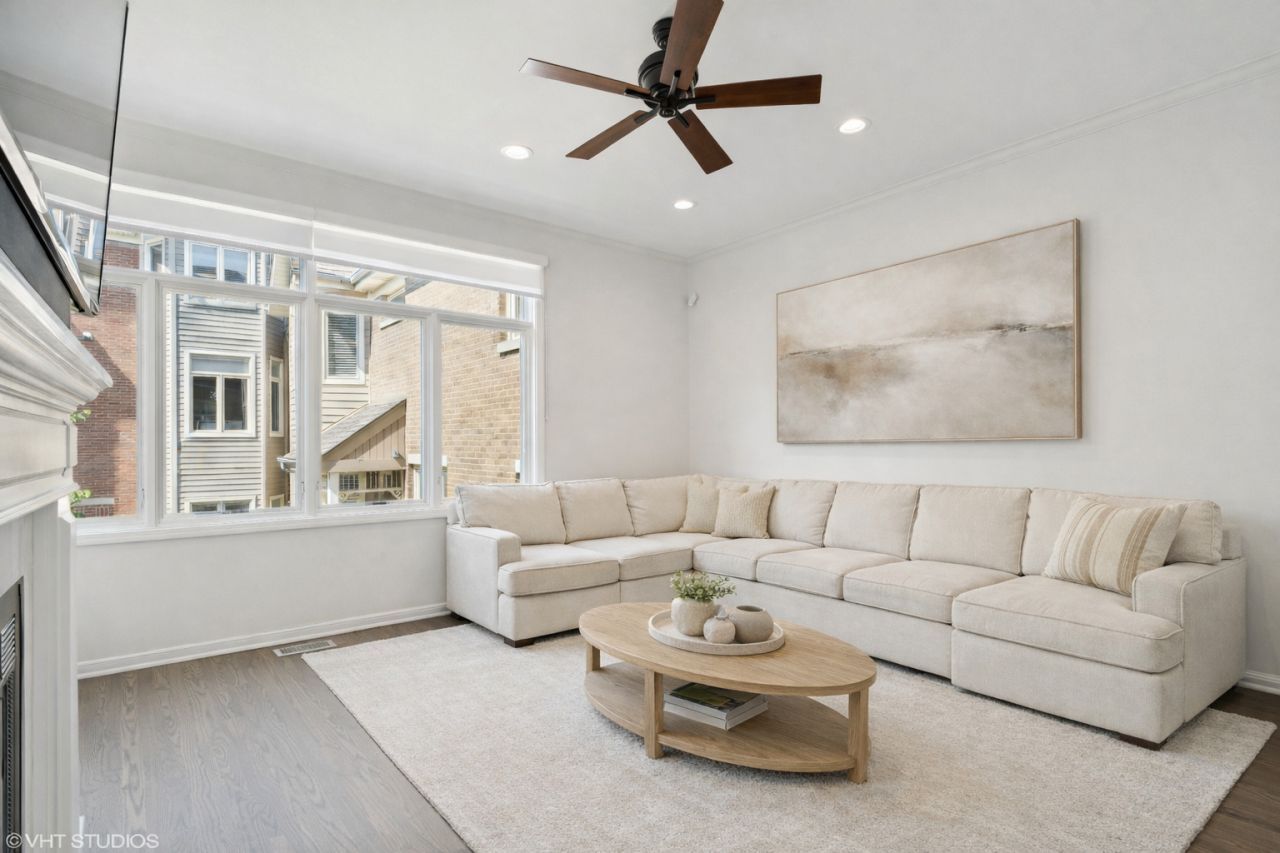 Beautifully updated and exceptionally spacious, this 3-bedroom plus family room, 2.1-bath Lakeview townhome lives like a single-family home! Tucked within a gated community on a quiet street, this sun-filled end unit offers three private outdoor spaces and quaint courtyard views. The main living level features a bright living room with a gas fireplace and custom built-ins, hardwood floors throughout, and a generous, separate dining area. The fully renovated kitchen is crisp and modern with white cabinetry, stainless steel appliances, quartz countertops with breakfast bar seating, and ample pantry storage. A beautifully finished powder room in travertine and oversized private deck complete this level. Upstairs, the primary suite is a true retreat with vaulted ceilings, organized closets, and a fully renovated bath featuring a dual vanity and timeless Carrara marble finishes. Two additional bedrooms are well-proportioned, each with custom closet build-outs, and are complemented by a second renovated full bath with soaking tub and marble detailing. The lower level offers flexible living space ideal for a family room, home office, or playroom, with seamless access to a private courtyard patio and an additional massive deck. Additional highlights include in-unit laundry and an attached 1.5-car garage with extra storage. Recent improvements include new windows, fresh paint, refinished hardwood floors, new carpet, washer and dryer, a brand new deck (2024), and new AC and furnace (2025). Ideally located within the highly sought-after Burley School District and just moments from Southport Corridor, Wrigley Field, parks, restaurants, shopping, and CTA access.