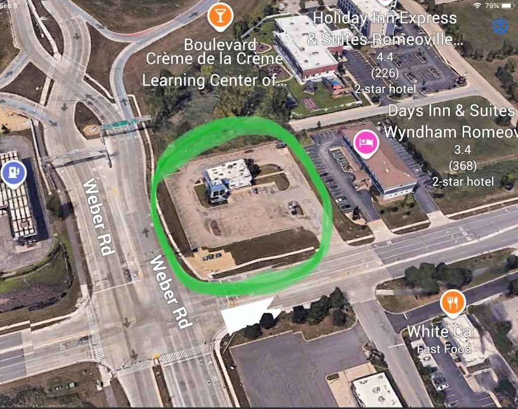 LAND LEASE or BUILD TO SUIT at this High Traffic STOPLIGHT Corner available for redevlopment! Just off I55 at Weber Rd:-) ALL Utilities are at the property... 1.69 ACRES (76,616sf), partially paved and there is a building on the property, IF you want to use it. Village incentives available & TIF approved 9/17/25! If you need more land, there is 1.6 Acres on the north side of this property that is listed for sale by another broker (combined, thats over 3 Acres, and that might make it A GREAT SELF STORAGE FACILITY Location?) with thousands of people going by every day. ZONING is B-3. Current building was a Fast Food restaurant with a Drive-Thru... other possible uses: Animal Hospital, Urgent Care, Hotel, EV Quick Charging Facility, New Strip Center, Child or Family Care, check the village zoning code for additional information.