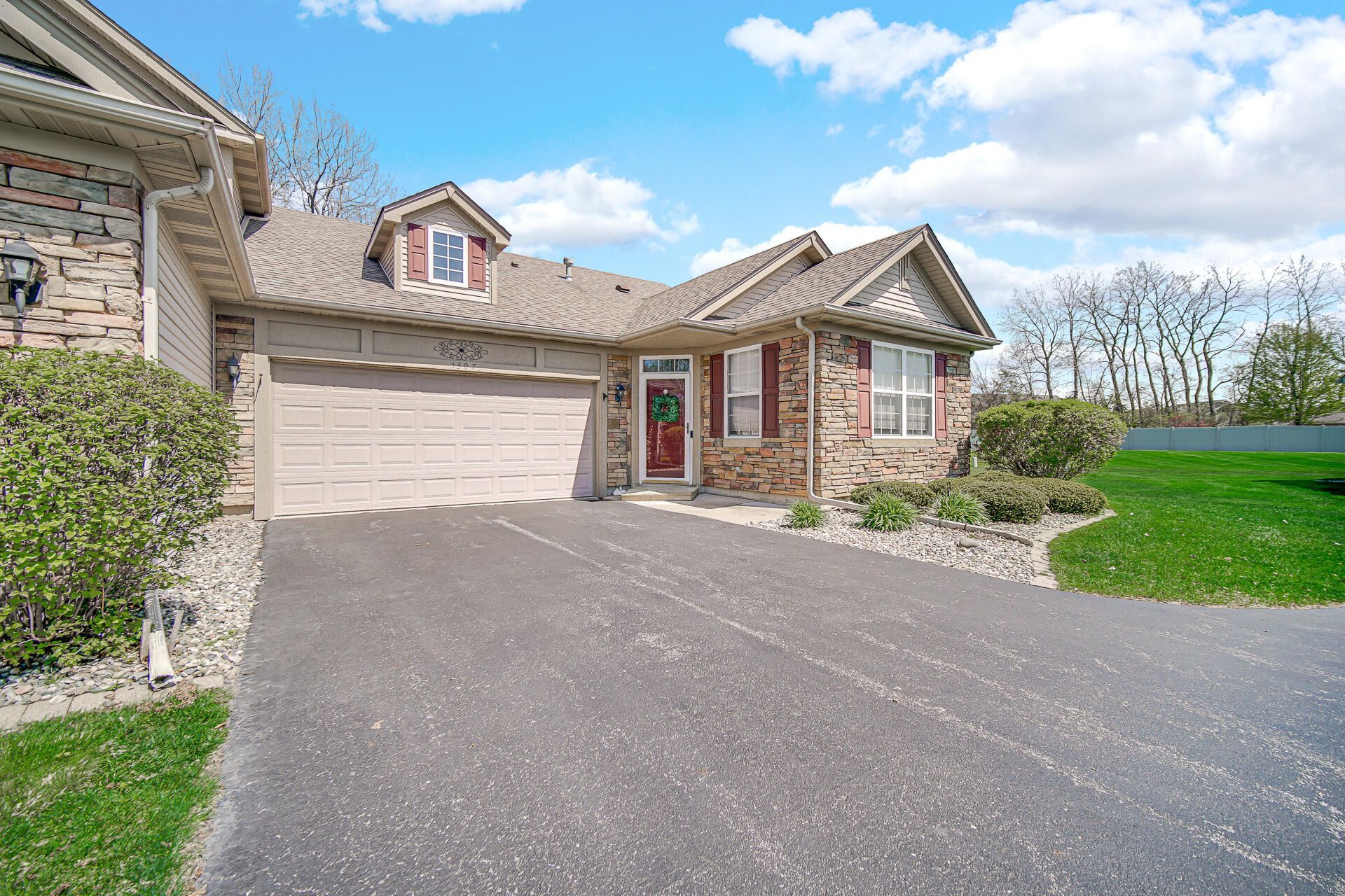 Pristine 2 Bed, 2 Bath Townhome with Resort-Style Amenities Light-filled 2 bedroom, 2 bath end unit ranch townhome featuring fresh neutral decor and a flexible open layout. Spacious den off the kitchen ideal for office, sitting area, or dining space. Eat-in kitchen with updated cabinets and all appliances included. Main-level laundry with washer and dryer. Primary suite offers walk-in closet with built-ins and updated 3/4 bath. Second full bath also updated. Enjoy a private extended patio overlooking a large .39 acre lot, one of the largest in the subdivision. Community amenities include clubhouse, fitness center, inground pool, pond, and walking path. Recent updates: freshly painted interior, A/C (2025), furnace (2024), water heater (2022), roof approx. 7 years old. HOA covers clubhouse access, lawn care, snow removal, and common area maintenance.