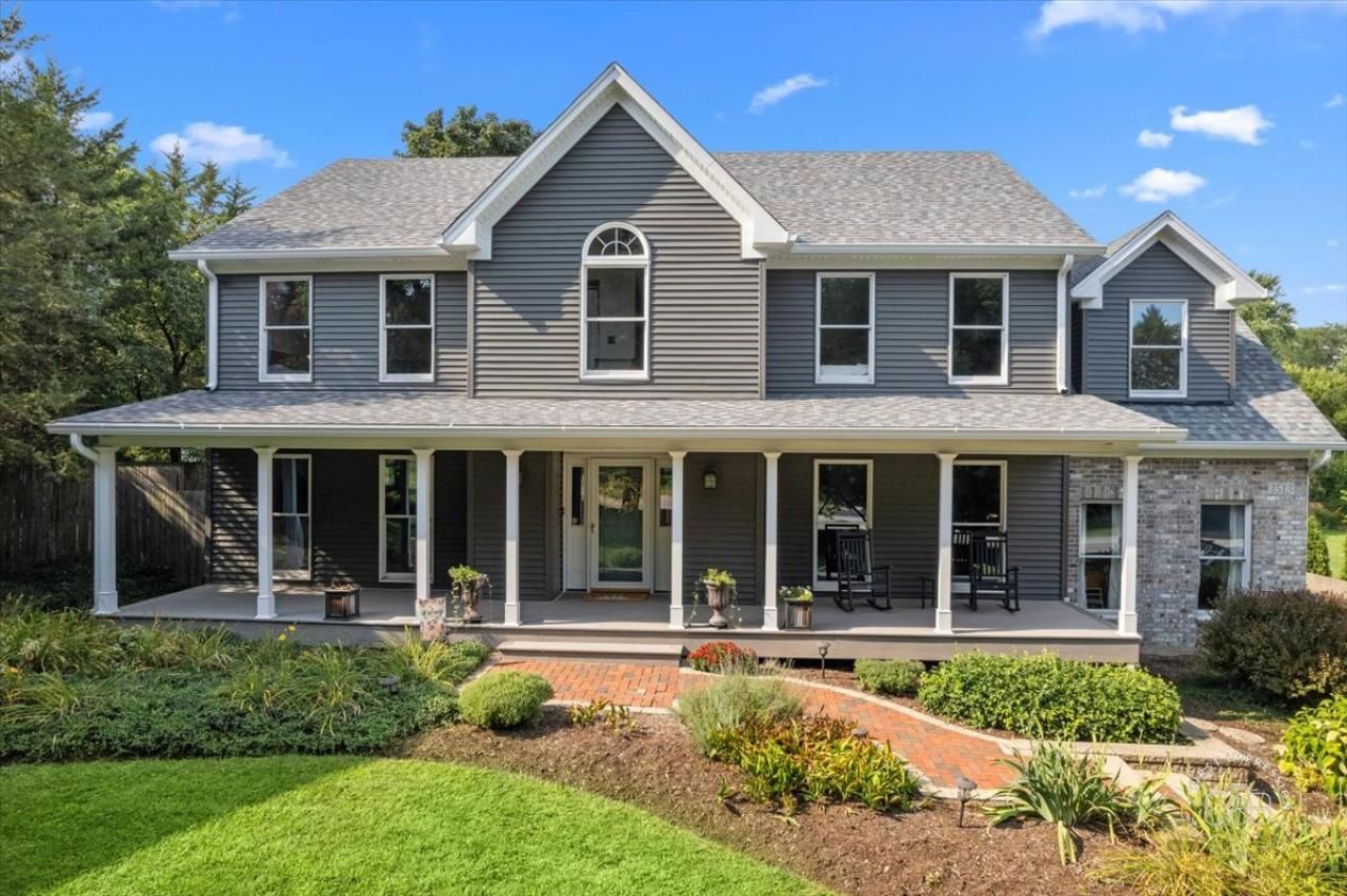 Incredible value... FABULOUS Geneva home close to town with 5 bedrooms and backyard oasis with salt water INGROUND POOL nestled on fenced .57 acre mature treed lot. UPDATES: New Pool installed in 2019...Front Porch 2019...Driveway sealed 2024... brand new roof and siding 2023..Interior paint 2024...2 new furnaces 2021.. basement carpeting 2024...water heater 2023...From the moment you see the wonderful front porch and step into the foyer, you KNOW you are HOME! Huge kitchen with breakfast bar/island, stainless steel appliances, wet bar, and dual-sided brick fireplace with bayed French doors out to the pool and yard. First-floor den/in-law with full bath and exterior access. Primary suite with brick fireplace, walk-in closet, wonderful views of the scenic pool and landscaped vistas...bath has whirlpool, double sinks and shower. 4 other bedrooms share a vaulted hall bath. Also has a back staircase...The finished lower level has a recreation and game room to please all entertainment needs. You will love this amply-sized home with all the upgrades! Move in and enjoy all it has to offer with ease of train access, shopping, restaurants, and close to elementary school. Come check it out and start making memories here!