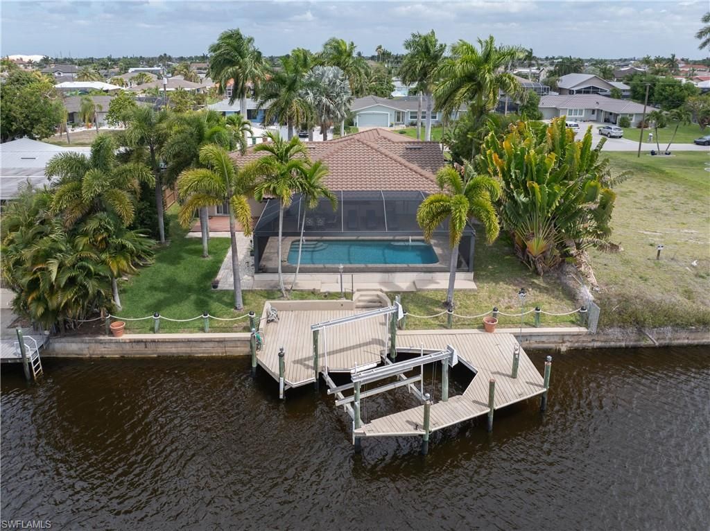 Beautifully remodeled and upgraded Direct Gulf Access Pool Home in the Cornwallis neighborhood. This home has been immaculately maintained and is move-in ready with furnishings included. This is the waterfront Florida lifestyle you are looking for! The front exterior features a pavered circular driveway surrounded by lush landscaping with stately Royal Palms. Step into the double front doors to a spacious open floorplan with high ceilings. The large kitchen has upgraded cabinetry, granite counter tops, a huge island and plenty of cabinet space with an added built-in wine cooler. Sliding glass doors open up to the sparkling pool and screened lanai with a highly desired Southern exposure. Primary bedroom also has a slider leading to the pool area. Primary bath features dual vanities, a large glass shower and walk-in closet with built-in shelving. Two furnished guest bedrooms, and one has a sliding door leading to a wood deck in the back yard with plenty of foliage for privacy. Impact Windows give peace of mind for storm protection. The dock features a Captain's Walk and 10,000 lb boat lift, and just a few minute boat ride to open water! New Roof 2021, New A/C 2024, New Pool Cage 2020, New Pool Pump and Heater, No Flooding! Schedule your personal tour today...you won't be disappointed!