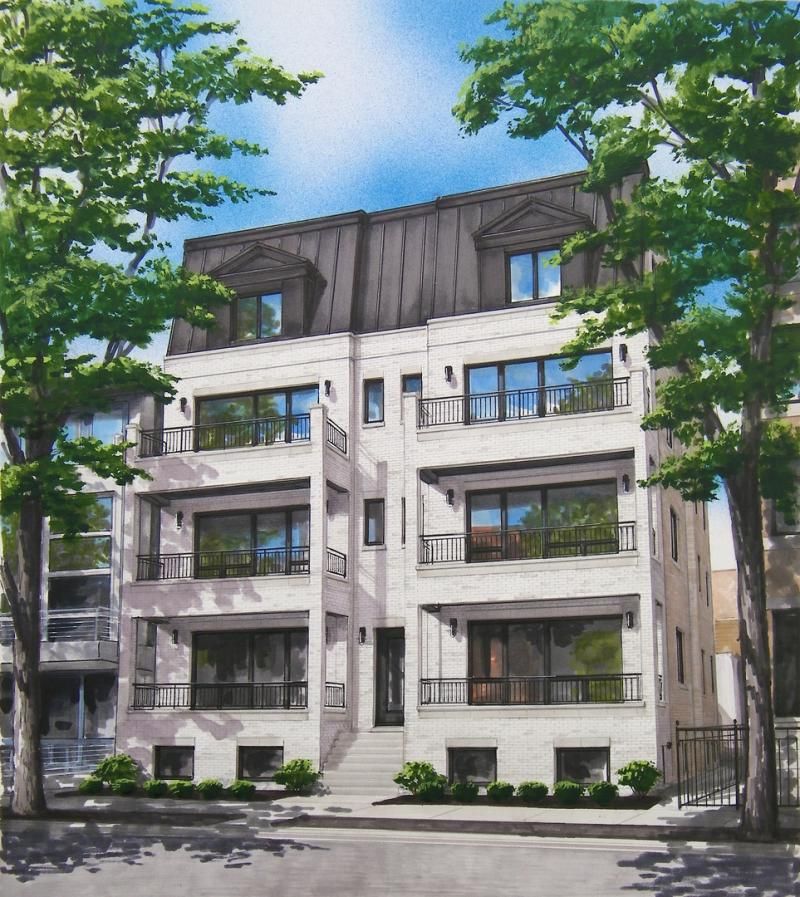 Halcyon Development welcomes the most handsome new construction building in Bucktown. Extra-wide center entrance property with large, thoughtful floor plans is sure to appeal to the most discerning buyer. Features begin with a light brick facade complimenting its limestone accents, a mansard roof with aluminum channels, and corner columns on front terraces. The exteriors are designed with a Parisian elegant aesthetic, while the interiors translate to a clean and functional plane. Dynamic kitchens embrace lux custom cabinetry, quartz counters, decorative tile backsplashes, and abundant storage. Featuring a premium appliance package including a beverage center. Gorgeous arched bar perfect for entertainment. Primary bathrooms boast heated porcelain tiled flooring, chic alabaster light fixtures to create ambient lighting, and double shower systems that feels like an oasis. Each unit enjoys rich natural light from thoughtful window placement as well as privacy. Webster is a serene treelined street, located close to the express way junction, blue line, and steps to its neighborhood favorite restaurants: The Leavitt Street Inn & Tavern, Le Bouchon, and Coast Sushi. A hop, skip and a jump to all the boutiques and even more fabulous restaurants on Damen such as Diptique, Lululemon, P.45, The Goddess and The Grocer, Bar Taco and more! This is a great opportunity to live in a brand-new building in an exciting Chicago neighborhood. Property delivering Nov/Dec.