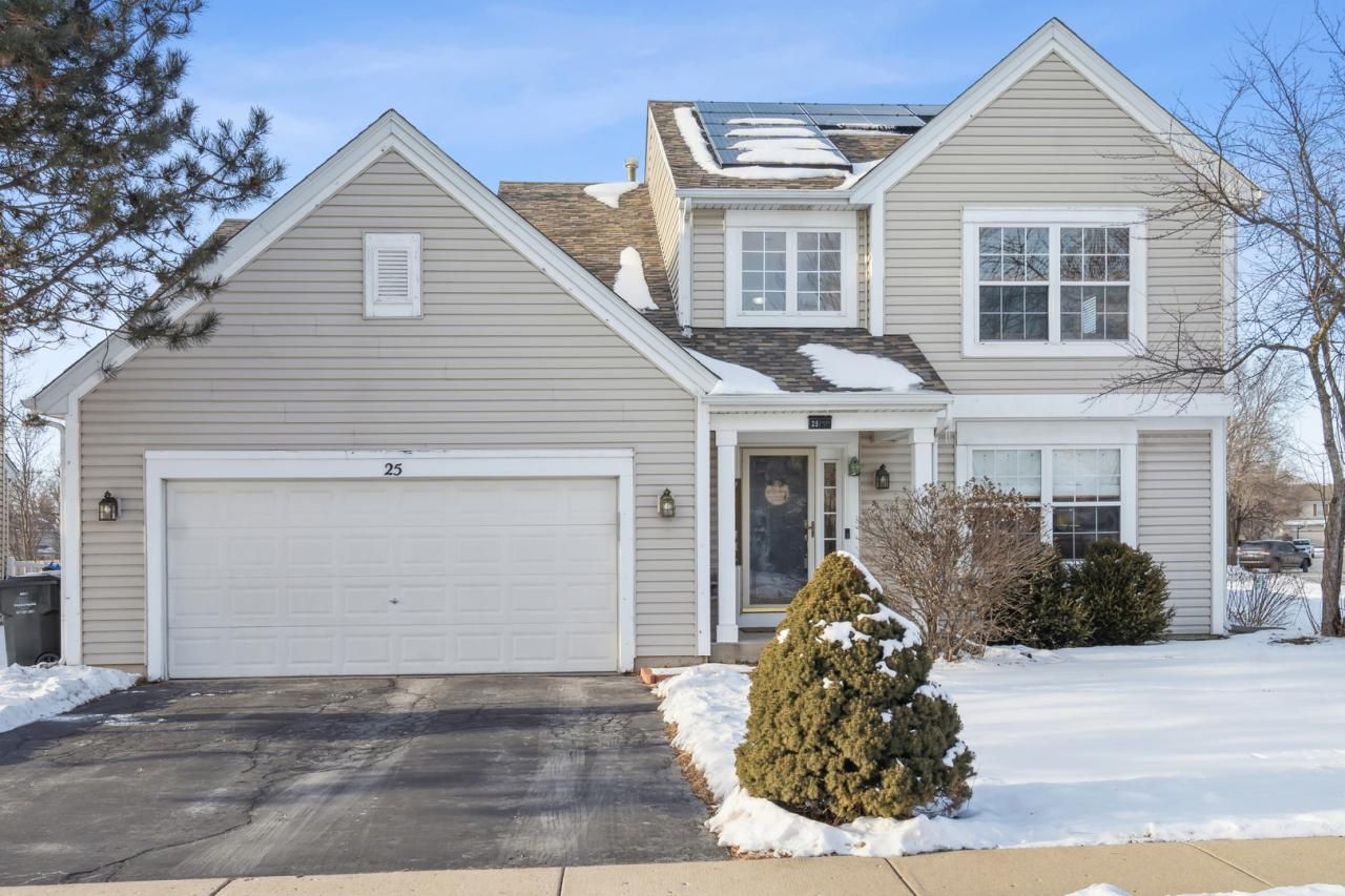 Welcome to this exquisite River Ridge home, nestled in the highly acclaimed St. Charles School District 303. Upon entering, you're greeted by a bright two-story foyer that sets a warm tone. This charming residence features a convenient first-floor office, perfect for remote work or study. The open-concept living and dining area leads to a spacious kitchen, a large island, stainless steel appliances, and a pantry. Sliding glass doors open to a sizable patio that overlooks a beautifully fenced backyard. The inviting family room, conveniently located adjacent to the kitchen, offers hardwood floors and a cozy stone fireplace complemented by built-in bookcases. Upstairs, you'll find an impressive master bedroom boasting vaulted ceilings, two closets, and an ensuite bath equipped with a soaking tub, separate shower, and dual sinks. Two additional bedrooms and a small loft area that overlooks the foyer provide ample space for family or guests. The fully finished basement includes a genuine fourth bedroom, complete with an egress window and extensive closet space, along with a third full bath, media room, game room, and a large storage area. The extra-deep 2+ car garage provides access to a practical laundry/mud room. Recent upgrades include: Newer kitchen (2021), new roof (2023), gutters (2015), a maintenance-free fence (2016) and an HVAC system with a humidifier (2017, 2019). water heater (2024), solar panels (2023), Kitchen appliances(2021), Washer and dryer (2022). Enjoy the outdoors with nearby bike trails and a dog park along the Fox River, plus a neighborhood park just a block away. This incredible home is just minutes from downtown St. Charles and St. Charles North High School. Make it your HOME.