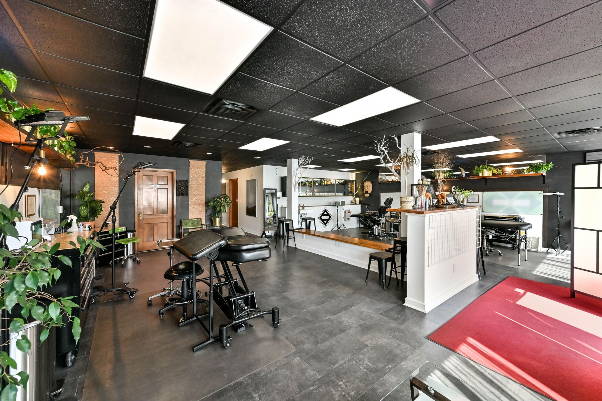 Incredible opportunity to make your dreams come true in this top to bottom renovated mixed-use space. Updates include remodel of front unit, paint - carpentry - new flooring - new lighting, etc, and build out of second unit, plumbing - electrical - drywall - blockwindows - 1/2 bath addition, with thoughtful sound proofing efforts, and new furnace. See full list of updates in documents section. Currently operating as a tattoo shop and studio space with lounge area, private office space, two bathrooms, oversized attached garage, and parking space for four, the sky is the limit for what you could do here! Bring your vision and plug right in.