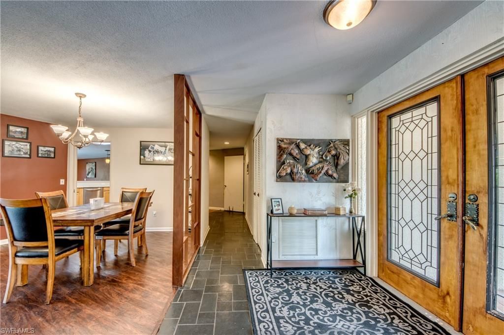 Estate home overlooking the #5 hole of Cypress Lake Country Club Golf Course with no fees connected to the home! This 4-bedroom, 3 bath home sits on a large lot with fruit trees offers privacy with the convenience of shopping and fine eating establishments close by. Lots of space for entertaining in the large living and family rooms or just lounging in the pool. The large kitchen has Corian countertops, pull-out cabinets and plenty of extra storage. The home is equipped with manual/electric hurricane shutters, generator, solar heater and propane, two A/C units, two septic systems (1 for the house and 1 for the RV) a new shingle roof. The property does need some improvements. This home can be a warm and inviting retreat with a few updates. Don't miss the chance to add your personal touch to this wonderful home.