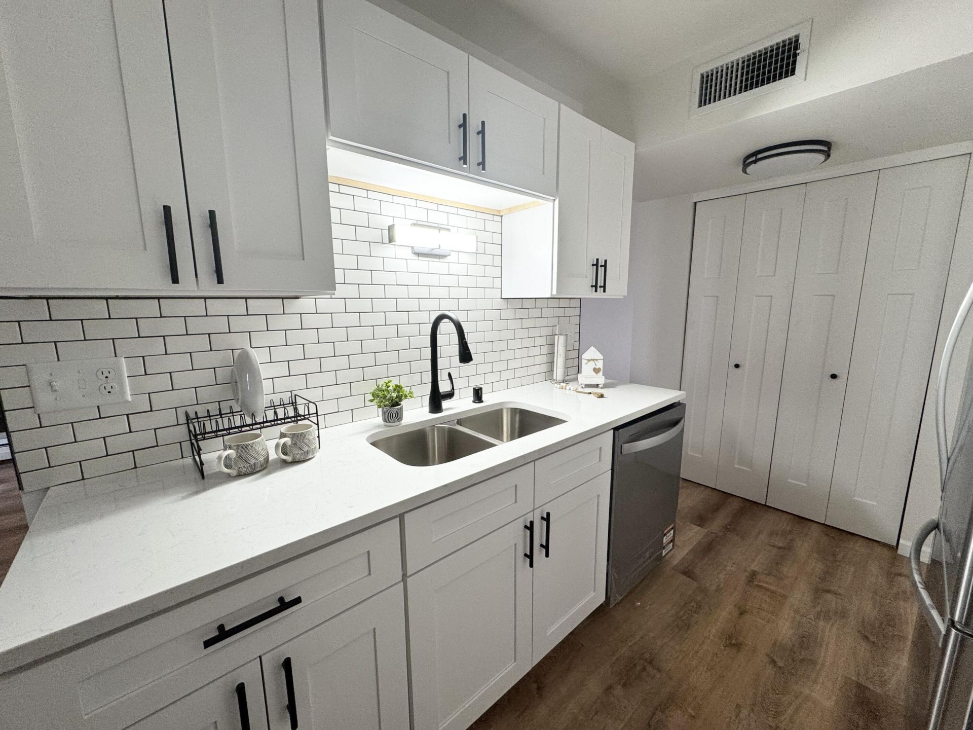 Beautiful newly remodeled 1 bedroom river view unit in the highly coveted RIVERS EDGE Condominium in Brown Deer. Kitchen complete with lots of new cabinetry, quartz countertops and appliances. For great ease and convenience separate bath and double sinks areas. As an added space in this second floor unit, spacious enclosed porch area. This updated unit also comes with 1 underground designated parking space, storage unit, heat, water and A/C. Rivers Edge offers many amenities: tennis court, clubhouse, pool, laundry room etc...Come take a look today, this unit with its comfort and style will not last long!