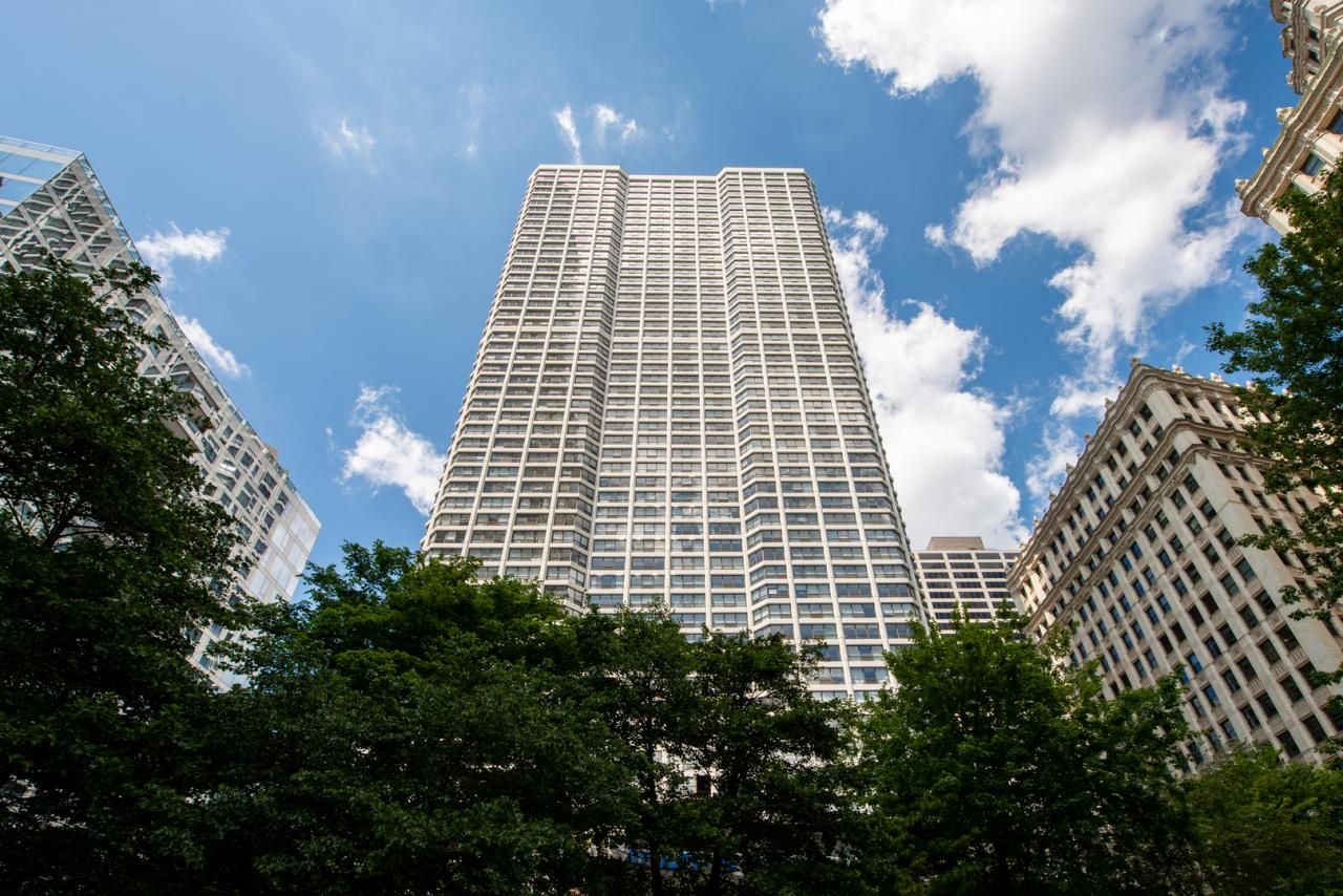 Have it all in city living with sweeping panoramic city views from oversized windows in this bright Jr. one bedroom located in the heart of River North. This sharp end unit offers panoramic East, South, and North exposures with stunning city views including the skyline and the iconic Wrigley Building and the Chicago River. Numerous custom upgrades featuring rich American Cherry wood floors thru out the apartment. The functional layout includes a timeless white kitchen, fully equipped with stainless steel appliances (dishwasher is black), ample cabinetry with custom hardware, white subway tile backsplash. Spacious living/dining room, and a bedroom with custom vintage sliding/barn doors for privacy. The bathroom has been updated with a full wall mirror, substantial vanity with cultured marble countertop, natural stone tile floor, with subway tile shower surround. The entire apartment is freshly painted and has custom lighting, plantation style blinds, and more than ample closet space plus a storage cage (wait listed). Raised 1st floor is equivalent to 4th floor height. River Plaza is an extremely well managed full amenity luxury condominium building, with on-site property management/maintenance, featuring 24-hour door staff, heated indoor pool with a hot tub and sundeck, expansive fully equipped exercise room, hospitality room, business center with wi-fi, package receiving, valet cleaners, bike room, attached parking garage, restaurant. All this in an A+ vibrant location with 100 walk score, steps away from the Chicago Riverwalk, Michigan Avenue, Theatre District, lakefront, great dining/restaurants, shopping, nightlife/entertainment, water taxis and public transportation ! Assessments include heat, a/c, water, common area insurance, cable, & internet. No rental cap.