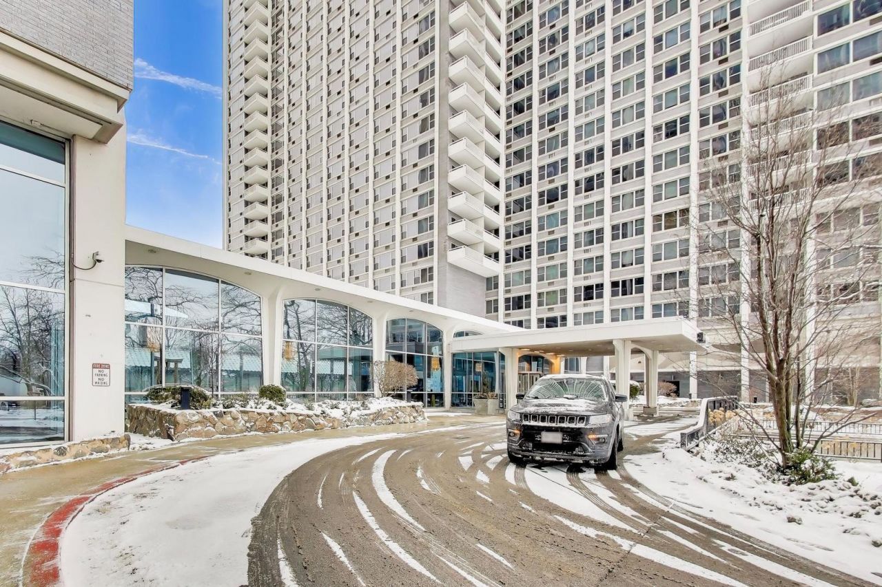 Move-in-ready studio residence offering an excellent blend of modern finishes, a flexible open layout, and truly standout lakefront views. The entry leads into a bright, expansive living space featuring wide-plank luxury vinyl flooring, crisp white walls, and oversized windows that flood the home with natural light while showcasing sweeping northeast views of Lake Michigan and the lakefront park. The thoughtfully designed layout allows for distinct living, dining, and sleeping areas, with a decorative room divider providing separation and privacy without sacrificing openness. The spacious living area comfortably accommodates full seating and entertainment furniture, while the adjacent dining space easily fits a table for everyday meals or hosting guests. The updated kitchen is both functional and stylish, featuring dark wood cabinetry, granite countertops, a glass tile backsplash, stainless steel appliances. The refreshed bathroom includes a modern vanity with integrated sink, contemporary fixtures, mirrored medicine cabinet, and clean tile finishes. Located in a full-amenity lakefront building with 24-hour door staff, residents enjoy an outdoor pool, fitness center, expansive party room with full kitchen, multiple grilling stations, landscaped seating areas, on-site convenience store with breakfast and lunch cafe, Amazon package station, and receiving room. Assessments cover most utilities, including cable and internet (electric excluded). Unbeatable location just steps from the lakefront, beach, parks, and dog park, with easy access to Lake Shore Drive, the CTA Red Line, and express bus routes #143 and #146 directly outside the building. Rental parking available.