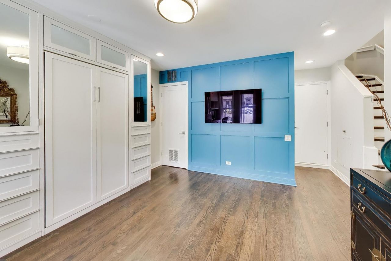 Rarely available 3 bed/2.5 bath townhome in the sought-after Via Como, a serene courtyard community nestled in the heart of Fulton River District. This wide floorplan home has been meticulously updated with refinished hardwood floors and stairs, and custom shaker doors throughout. The remodeled chef's kitchen is a showstopper, featuring quartz countertops, a waterfall island, upgraded appliances, custom cabinetry, and designer chandelier/task lighting. Step out onto the balcony off the kitchen, perfect for grilling and entertaining. The spacious living room, adorned with Maya Romanoff wall coverings, custom wainscoting, and a cozy fireplace with custom built-ins, flows seamlessly into a dedicated dining area. Retreat to the expansive primary suite, now remodeled with custom California Closets, built-in cabinetry, designer light fixtures, and a spa-like bath. The luxurious bath includes Porcelenosa tile, a Toto washlet, Kalista fixtures, ceiling rain tiles, Robern medicine cabinets, heated floors, heated towel rack, and extensive custom lighting. The first-floor bedroom has been transformed with a custom California Closets Murphy Bed system, integrated cabinetry, and a desk, making it a versatile space for guests or a home office. The first floor also includes a powder room and opens to a private front patio overlooking the picturesque courtyard. The oversized rooftop deck, now upgraded with electric and Trex decking, is perfect for summer gatherings or quiet evenings under the stars. Additional updates include a new furnace and AC, custom blinds throughout, designer light fixtures, USB outlets, and incredible storage. A Nest thermostat and a 2-car attached garage complete this truly turn-key home. Just a 2-minute walk to the Blue Line and quick access to 90/94, this home is perfectly situated for city living. Enjoy being steps away from the vibrant offerings of Fulton Market and West Loop. Located within the highly-rated Ogden International Elementary School district, this home leaves no interior design opportunity missed!