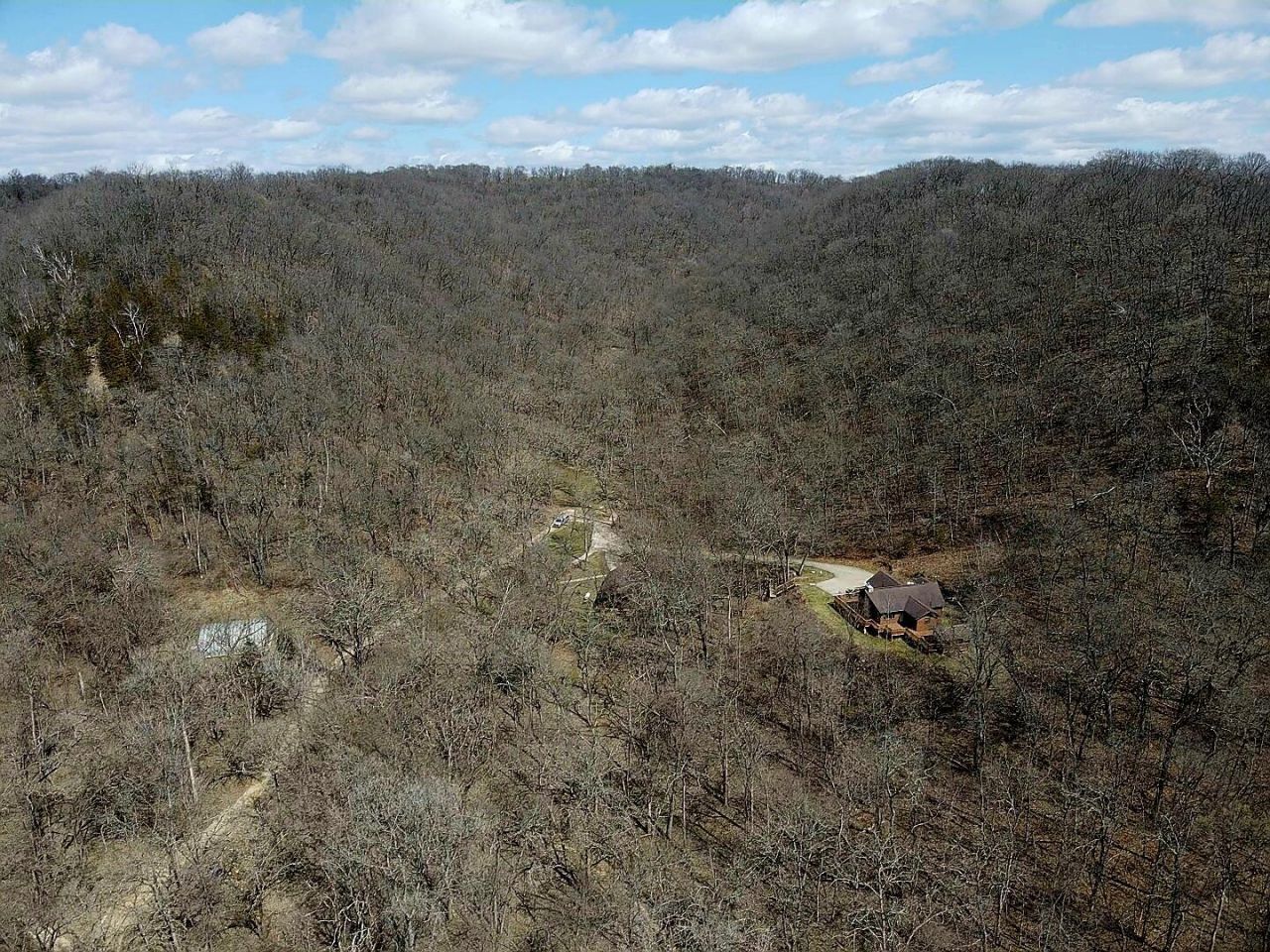 Secluded 20-acre retreat featuring a well-maintained one-level home with 2 bed and 1 bath. Enjoy cozy evenings by the stone gas fireplace, with additional wood stove heat or forced air heat for year-round comfort. The home offers tiled floors, solid surface countertops, and beautiful hickory cabinets throughout. A heated detached 3+ car garage includes extra sleeping space with gas fireplace, perfect for guests or overflow. Ideal for private hunting, weekend getaways, or full-time living. Conveniently located just minutes from the Mississippi River and Copper Creek for endless outdoor recreation.