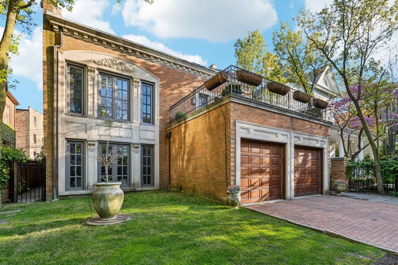 Discover 579 W Hawthorne Place, a rare and refined single-family residence set within in the prestigious, landmarked Hawthorne Place District. Built in 1928, this stately all-brick and limestone home blends timeless architectural elegance with modern luxury across an expansive 5,000 square feet of living space on a 50x130 double lot-a true urban estate in East Lakeview. From the moment you enter, you're greeted by a dramatic two-story solarium entryway and a grand staircase crowned by a custom skylight. The sunken living room provides both openness and distinction-perfect for formal entertaining or relaxed everyday living. Adjacent, the generous dining room offers a sophisticated space for hosting. At the heart of the home is a chef-caliber Scavolini kitchen equipped with premium appliances, including a Wolf six-burner range, paneled Sub-Zero refrigerator and freezer, warming drawer, and dual Bosch dishwashers. A substantial island with prep sink and breakfast bar anchors the space, flowing into a sunny breakfast area framed by floor-to-ceiling windows, which opens seamlessly to the family room. Upstairs, the primary suite is a true retreat, featuring a vaulted ceiling, hand-applied Portola Paints Roman Clay wall treatment, gas fireplace, and a private terrace for morning coffee or evening relaxation. The suite also includes a 15x12 walk-in closet and access to a 20x13 attic for additional storage. The spa-like en suite bath features a steam shower, air-jetted Kohler tub, and radiant heated floors. Four additional spacious bedrooms upstairs provide ample room for family or guests, each served by bathrooms with skylights and heated floors. A flexible den or study offers space for work or retreat. A designer powder room on the main level adds a touch of sophistication. Additional highlights include newly installed wide-plank white oak flooring, fresh paint throughout (including walls, trim, doors, and moldings), dual-zoned HVAC, solar panels for energy efficiency, a private fenced yard with built-in sprinkler system, and a brick paver patio ideal for outdoor dining. The attached two-car garage includes an electric vehicle charger, and the gated driveway provides parking for two additional vehicles. All of this just steps from Belmont Harbor, the lakefront, and Lake Shore Drive, with shopping, dining, nightlife, and transit at your doorstep. Located in the Nettelhorst school district, on the same block as Chicago City Day School, and walking distance to Bernard Zell Anshe Emet School. Truly one of a kind-schedule your private tour today. Welcome Home!