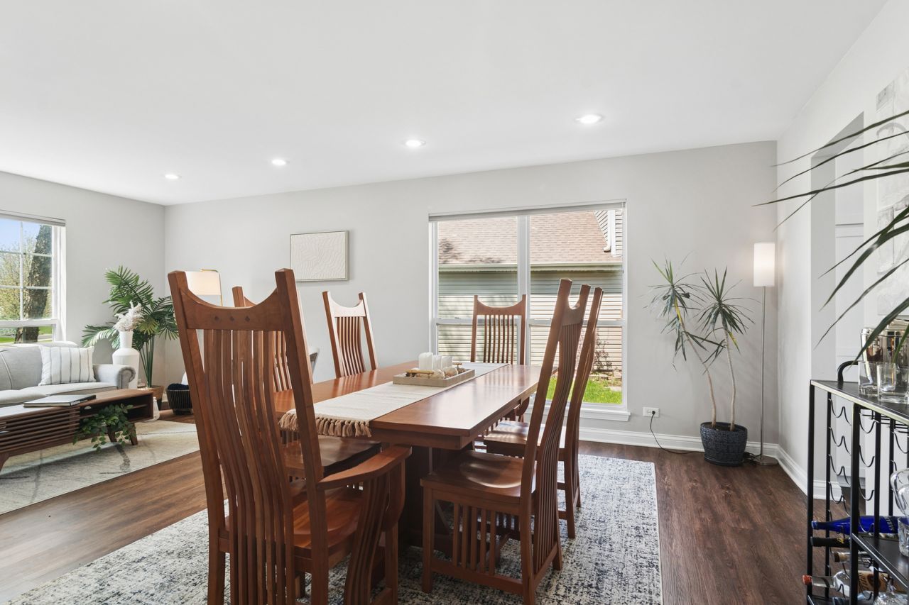 Welcome to your dream home in Kimball Farms-where space, style, and comfort come together effortlessly. This exceptional two-story residence where luxury, space, and thoughtful design are evident from the moment you arrive. As you step through the front door, you're immediately greeted by dramatic vaulted ceilings soaring approximately 18-20 feet high, creating a grand, open atmosphere filled with natural light. At the heart of the home is a stunning floor-to-ceiling brick fireplace, perfectly framed by expansive windows that flood the space with sunlight and enhance the home's impressive scale. The open-concept layout flows effortlessly across the main level, highlighted by rich, darker vinyl flooring that adds warmth and modern sophistication. A beautifully crafted hardwood staircase with newly updated metal spindles serves as both a focal point and an elegant transition to the upper level. Upstairs, the landing continues in hardwood, adding to the home's refined finishes. The fully updated kitchen is designed for both style and function, featuring crisp white maple cabinetry, all-new stainless steel appliances, with granite countertops an ideal layout for entertaining. It opens seamlessly into the family room, making it the perfect setting for gatherings both large and small. This home offers 4 generously sized bedrooms, each with 8-foot ceilings that vault up to approximately 10 feet, enhancing the sense of openness and comfort. Fresh paint and newer carpeting in each bedroom provide a clean, move-in-ready feel. The expansive primary suite is a true retreat, featuring his-and-her closets, including a walk-in, and a spa-like ensuite bath complete with a double vanity and separate shower. The finished basement adds exceptional living space, complete with a full bathroom and ample storage-perfect for entertaining, a home gym, or extended living. Additional highlights include a versatile main-floor bonus room ideal for a private office or guest bedroom, and a beautifully updated mudroom with charming farmhouse design, offering both functionality and style with direct access to the garage and side yard. Step outside to your own private oasis-an expansive, fully fenced backyard overlooking a serene water view. Enjoy peaceful mornings or host unforgettable evenings beside the custom-built fountain, all within a setting designed for relaxation and entertaining. This home truly delivers the perfect balance of luxury, space, and everyday comfort-an opportunity not to be missed. Ideally located in Carpentersville, this home offers exceptional convenience with close proximity to a wide variety of dining, shopping, and everyday amenities. Enjoy easy access to major highways for a seamless commute, while also being just minutes from the scenic Fox River, perfect for outdoor recreation and relaxation. The area is served by the highly regarded Community Unit School District 300, known for its award-winning schools serving both Carpentersville and Algonquin