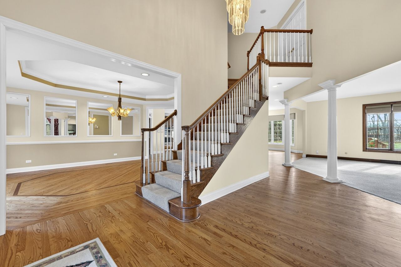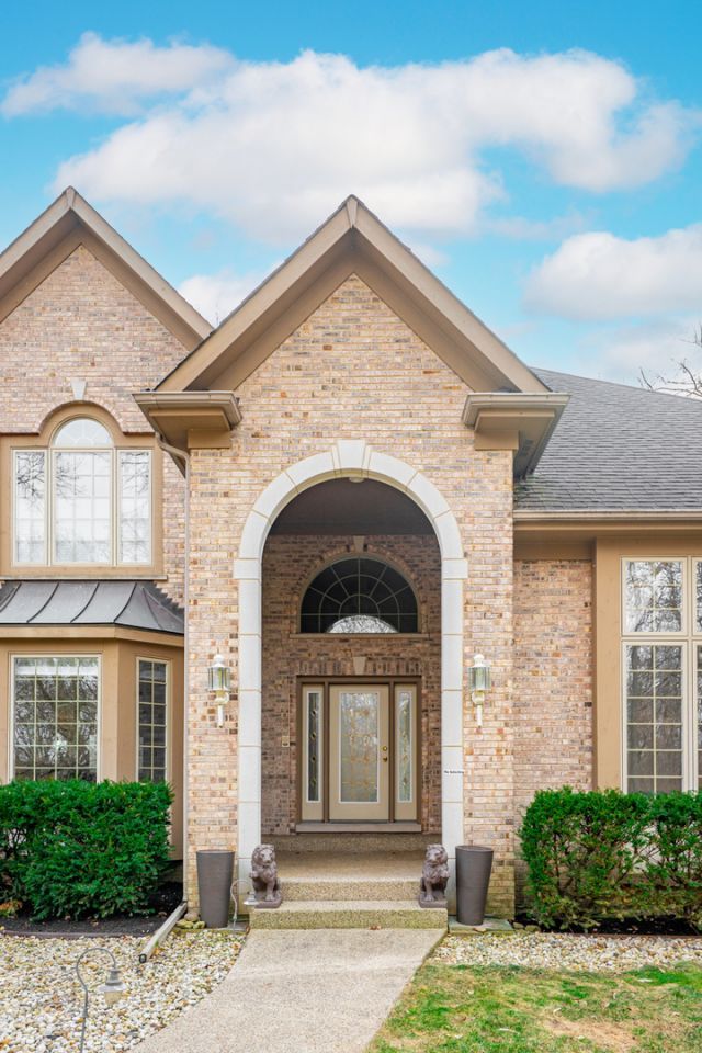This stunning home is privately set back in the shade on a beautiful wooded acre, offering over 5,000 square feet of exceptional living space. With 5 bedrooms, 41/2 baths, a finished basement and a rare 4-car garage, this former builder's model showcases premium upgrades throughout. Step into the dramatic two-story foyer and immediately appreciate the home's open, airy feel. The living room features a soaring 12-foot ceiling with elegant crown molding, while the formal dining room boasts a tray ceiling and inlaid flooring. The expansive kitchen is a chef's dream, complete with a solid surface counters, large island with breakfast bar, stainless appliances, built-in gas range, double oven and walk-in pantry. The kitchen flows seamlessly into the inviting family room with accent columns and highlighted by a warm brick fireplace. A private den with French doors and classic wainscoting offers the perfect space for a home office or study. Upstairs, the spacious primary suite provides a relaxing retreat with a luxurious en-suite bath featuring a double vanity, whirlpool tub, and separate walk-in shower. The second bedroom includes its own en-suite bath, while bedrooms three and four share a convenient Jack-and-Jill bathroom. The finished basement expands your living space with a generous multi-purpose recreation room, a fifth bedroom, and a fourth full bath-ideal for guests or extended family. Additional features include zoned heating and air conditioning, central vacuum, a security system with cameras, and Comcast service for high speed internet and TV. Enjoy summer evenings on the patio and composite deck overlooking the private backyard. A powered shed provides extra storage for lawn equipment, toys or outdoor furniture. Completing this exceptional property is the highly desirable 4-car side load garage.