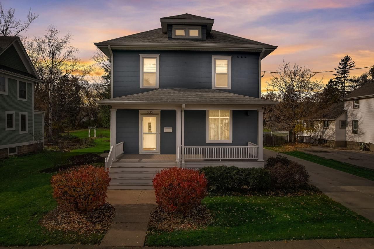 Charming 1910 home with 3 beds, office, & 1.1 baths located on a 3/4 acre lot near Woodstock's historic square & Metra train. The floorplan offers a beautiful formal entry, living room, formal dining room, and an eat-in kitchen. Your going to love the original woodwork, hardwood floors, and new carpeting. Modern comforts include updated baths, furnace, AC, tankless water heater, and 200 amp electrical service & R-49 attic insulation. Exterior boasts a front porch with PVC decking, & fresh paint (2022), a Detached 20x30 garage with drive-thru door, 20x12 storage shed, plus a bonus: zero-turn mower and snow blower included. Don't miss this blend of history and modern convenience!