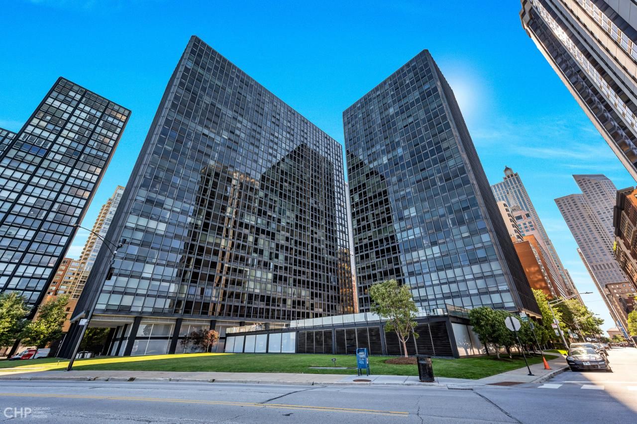 Unique opportunity to live surrounded by awesome northeast corner lake views from the 27th floor in one of Mies van der Rohe's iconic high rises on Lake Shore Drive. Situated in the heart of Streeterville's residential neighborhood, just steps away from the lakefront trail, Oak and Ohio Street Beaches, world-class shopping on Michigan Avenue and Oak Street, plus a plethora of dining options. The location offers the perfect blend of urban living and natural beauty. See the Navy Pier fireworks without leaving home. A short walk to Northwestern University and hospitals, Children's Memorial Hospital, the MCA, public transportation, and Lakeshore Park, which has a quarter mile track, 2 tennis/pickle ball courts, and built-in outdoor exercise equipment. Large galley kitchen partially opened to the living/dining room. Newer hardwood floors throughout. Two newer Marlo units in living room and primary bedroom. Building amenities include 24 hour door staff, receiving room, valet services, tailor, sundeck, grocery store, storage locker and on-site management. This is a no dog building. Self parking available act $300 a month.