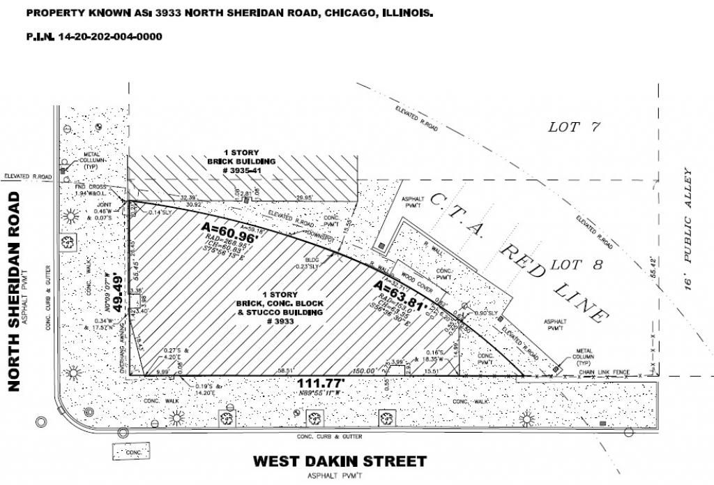 3,741 SF - TOD Development site available - directly adjacent to the Sheridan Red Line L-Stop and only a couple blocks to Wrigley Field (7 minute walk away)! Prime corner for a Build-to-Suit Development. Take advantage of the TOD proximity for your development. High profile corner in Wrigleyville/Lakeview. 44.47' of frontage along Sheridan and 111.77' of frontage along Dakin. Great demographics, location, transportation, shopping, access etc... Call now for more information.