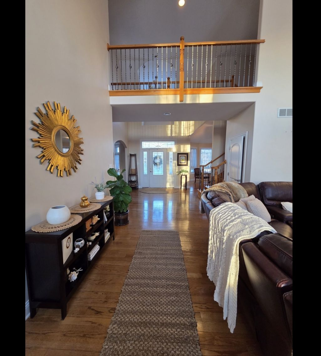 Step into timeless elegance with this French Provincial-inspired brick estate, showcasing dramatic rooflines, refined architectural detailing, and stunning curb appeal. Inside, a grand foyer introduces a luxurious layout featuring a formal dining room with custom wainscoting, tray ceilings with cove lighting, a formal living room, and a chef's kitchen with upgraded stainless steel appliances and hood, expansive granite counters and island, with a walk-in pantry. The kitchen opens to a sunlit breakfast area with a bay window. Stepping into a Great Room with a floor to ceiling fireplace. A main floor office, full bath, and stylish mudroom elevate convenience. The finished 9 ft basement ceilings offers two spacious bedrooms, a full bath, a brick fireplace and a versatile recreation space. Overlook the Great room as you venture upstairs to walnut plank flooring, four expansive bedrooms that offer vaulted and tray ceilings, three bedrooms offer walk-in closets, and three full baths include a spa inspired primary suite with dual vanities, soaking tub, separate shower. Outdoor living shines with an oversized patio and a shaded pergola surrounded by mature maples. Located in the prestigious Timbers Edge subdivision and Lincoln Way East district minutes from downtown Frankfort, this home delivers unmatched luxury and comfort.