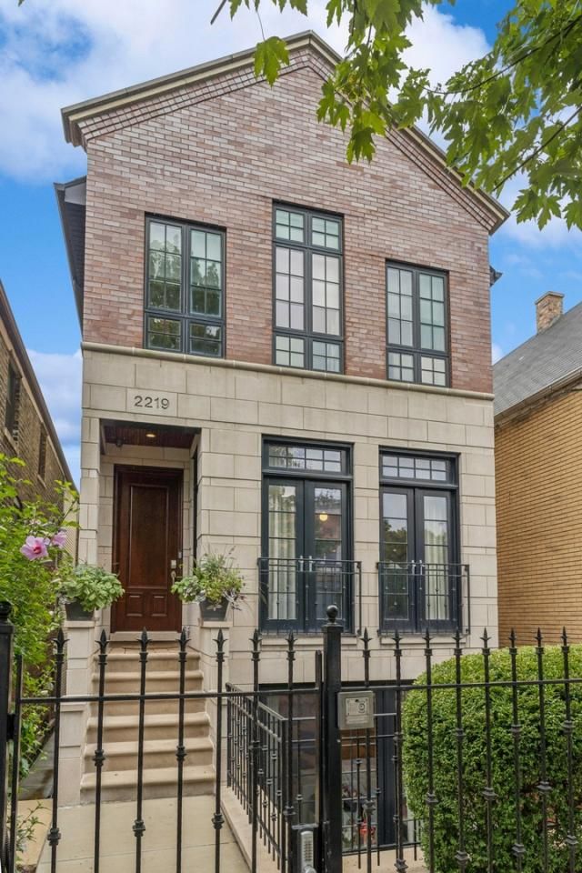CLICK ON VIDEO LINK FOR DRONE TOUR. Nestled on a serene, one-way, tree-lined street in Bucktown, this meticulously maintained 4-bedroom, 3.1-bath home boasts designer touches throughout. The brick and limestone facade offers impressive curb appeal, while the interior features an updated kitchen and baths, showcasing modern elegance. Upon entry, you are greeted by an abundance of natural light streaming through a full wall of double doors and a stair lightwell. The front dining room is adorned with designer wallpaper, window treatments, and a fireplace, seamlessly flowing into a well-designed kitchen. Beautiful display cases with interior lighting, stone countertops, herringbone backsplash, stainless steel appliances, a vented hood, and a wine cooler complete the kitchen. Step outside to enjoy easy access to outdoor living, featuring a multi-story south-facing Brazilian Ipe rooftop deck and pergola. The main level includes a chic powder room tucked away for added convenience. Upstairs, the primary suite impresses with vaulted ceilings, beam details, and a walk-in closet. The luxurious primary bath is a retreat-like oasis with a freestanding soaking tub, heated hexagon marble floor, and a rain head shower with multiple sprays. Two additional bedrooms on this floor feature vaulted ceilings and built-ins, along with a renovated hallway bath by Outline Interiors and a secondary optional laundry hookup closet. The unique lower level is perfect for recreation, offering incredible natural light through sliding doors that open to the front terrace. Radiant heat flooring keeps the space cozy, along with a fourth bedroom, another renovated full bath by Outline Interiors, and a spacious laundry/utility room. The organized mudroom leads to the attached 2-car garage equipped with an electric car hookup. This home leaves no detail overlooked, two newer A/C units (2022), a tankless water heater, a reverse osmosis water system, and ample storage throughout. Just a stone's throw to everything Bucktown has to offer: 606 Trail, Holstein and Churchill Park, Pulaski School District, Midtown Athletic Club, Blue Line, Metra and 90/94 highway.