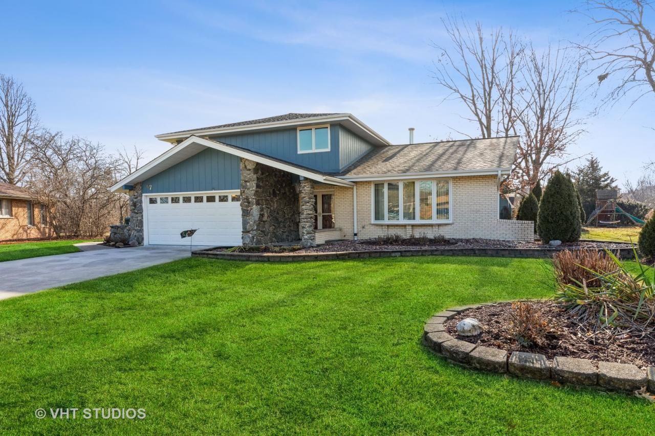 Now is the time to see this rare find here in Orland Park! Over 3/4 of an acre with water and sewer in this highly sought after unincorporated part of Orland Park. This Brick & Cedar home with stone front entryway boasts 4BR, 2.5 baths, and sits on 2 combined lots with 2 PIN numbers. Lots of symmetry and natural elements in the favorite ALL season Sunroom (18x15)- with full wall windows, year-round nature views; cedar vaulted ceilings, 2 skylights (2016). This room has zoned heating with its own thermostat; the exterior 4-screen door w/ BI blinds (2022) opens onto a 29x14 deck where you are surrounded by lovely landscape upgrades and more! A private bridge leads to a retention pond and neighborhood park. A second backyard bridge leads to private nature area (back lot-the 2nd PIN). Lofty ceilings expand the space in the Kitchen with vaulted ceilings and skylight (2016) and living room with cathedral ceilings (2016). Both Liv Rm bay window & Din Rm window were replaced in 2022 (casement and all)! Family Room has hardwood flooring, stone fireplace, Pella patio door with inside blinds (2010). Here you will find convenient access to brick pavered patio. Extra high finished basement ceiling has 3 lookout windows and only 1 window well. Roof replaced in 2016; new roof vent, soffits, fascia also 2016; redid & top of chimney; roof cricket also redone in 2016. ML gutters are leaf guard. Partial chimney rebuilt in 2022; Roof and gutters on SHED also replaced in 2016. This shed includes a 1 and 1/2 car garage. Dimensions of the garage portion of shed are 17x29. This shed also includes electric, water, and attic staircase! There are two heating/AC systems in this home! ML HVAC system 2019; 2nd floor HVAC system -2022. MBR, bath and hallway carpet- 2020. All baths have been updated! Efficient ML Laundry room has white cabinetry-lots of storage; and newer entry door with 2-screen door (2022) and window (2022). All BR windows were replaced in 2010. Simply too much to list here......Viewing this property is a MUST!! Additional Info tab-has disclosures, actual surveys of both lots, floor sketch, and other important info!
