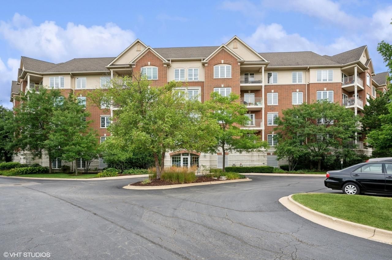 Great, light-filled 2 bedroom, 2 bath condo with open floor-plan in the beautifully landscaped & maintained South Commons development. Incredible location just South of the Deerfield Square shopping center featuring Whole Foods Market, lots of great shops, casual and fine dining options, and close to DT Deerfield offering library, Deerfields Bakery, easy commuter train access. Proper foyer entryway with hardwood floor greets you. Well-equipped open kitchen with hardwood floor, abundant maple cabinetry, solid-surface counters, double-sink, gas cook-top range, pantry closet & large breakfast bar, ideal for entertaining. Big living/dining room combo with large windows and access to large private balcony. Very generous primary suite with huge walk-in closet plus 2nd closet, large private bath with glass-enclosed tub/shower combo & double-sink vanity. Well-positioned 2nd bedroom (can be used as an office or den) directly across from 2nd full bath with glass-enclosed walk-in shower. Quality construction touches like solid-core interior doors, in-unit laundry room! Includes 1 indoor heated garage parking space, ample guest parking, additional storage. Well-run secured entry building. Assessment includes many utilities. Ideal carefree lifestyle awaits!